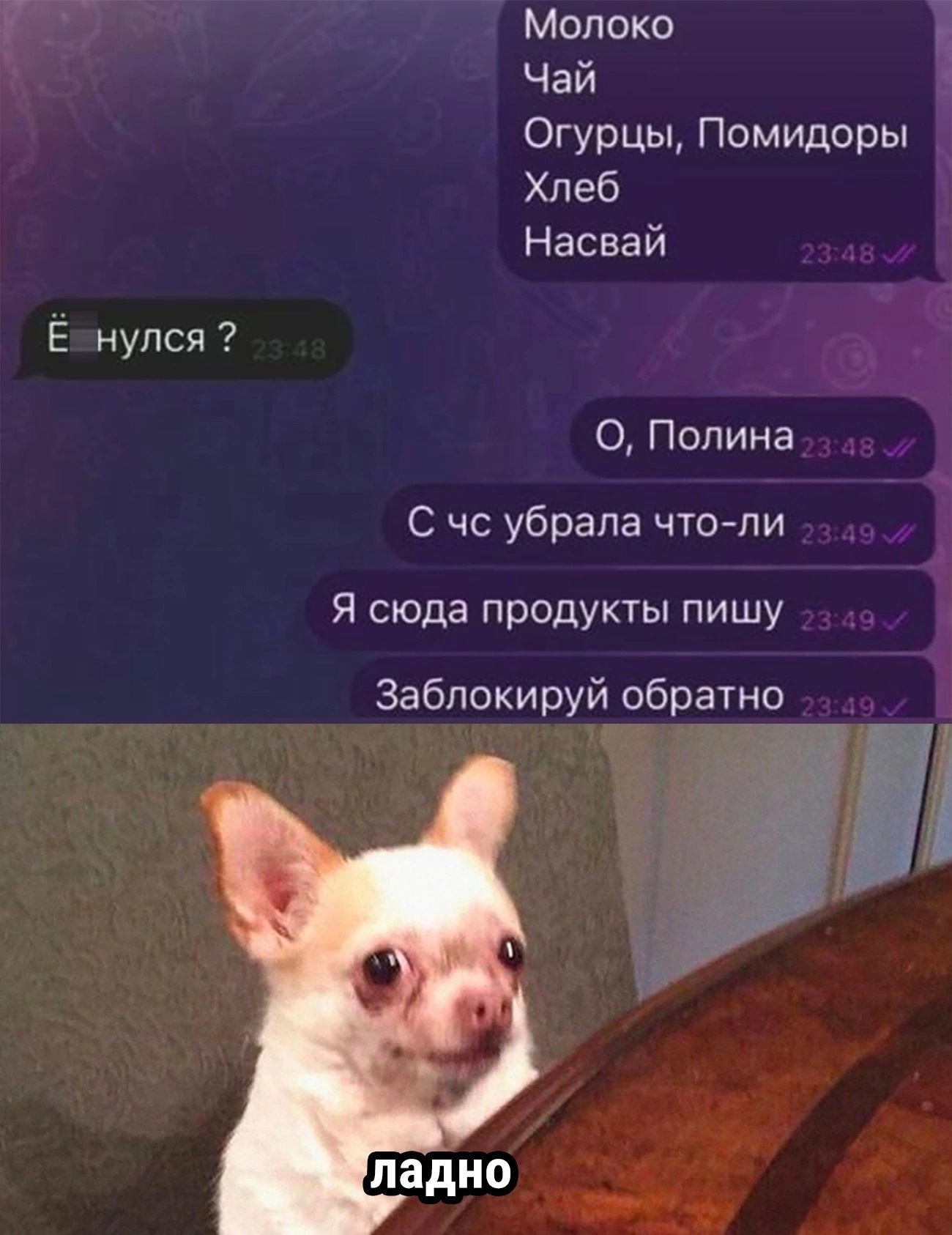Двусоставные мемы: Классические мемы, состоящие из двух частей: завязки и панчлайна. Эти мемы часто сопровождаются визуальным материалом, таким как картинки с обкуренным парнем или звездным небом.