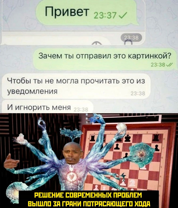Двусоставные мемы: Классические мемы, состоящие из двух частей: завязки и панчлайна. Эти мемы часто сопровождаются визуальным материалом, таким как картинки с обкуренным парнем или звездным небом.