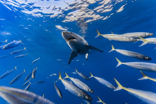 Знакомство с акулой: Встречайте величественных акул, плавающих рядом с поверхностью воды.
