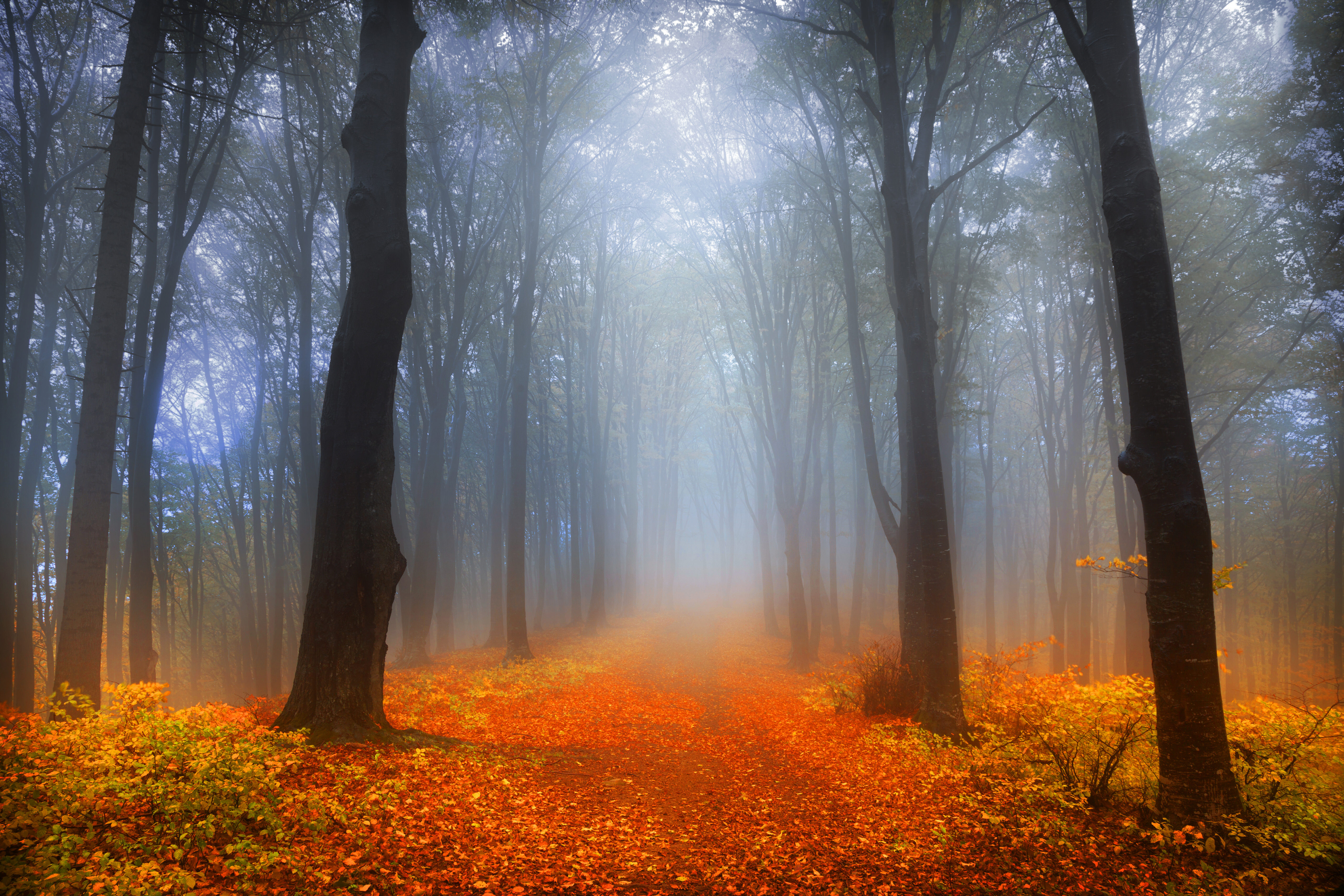 Как скачать картинку лес дорога деревья туман листва