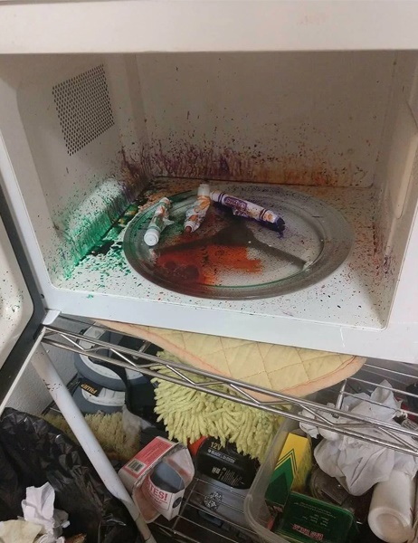 Слава Богу, в доме нет оружия или взрывоопасных веществ. Это всего-лишь фломастеры
