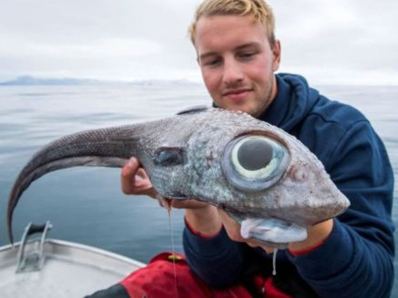 По-другому эту рыбу называют морской крысой и она является дальним родственником акулы. Для человека опасности не несёт. Но страшный внешний вид однозначно пугает! Однако, природа как всегда всё продумала: огромные глаза морской крысы отражают свет, подобно кошачьим, и помогают ей ориентироваться в темноте.