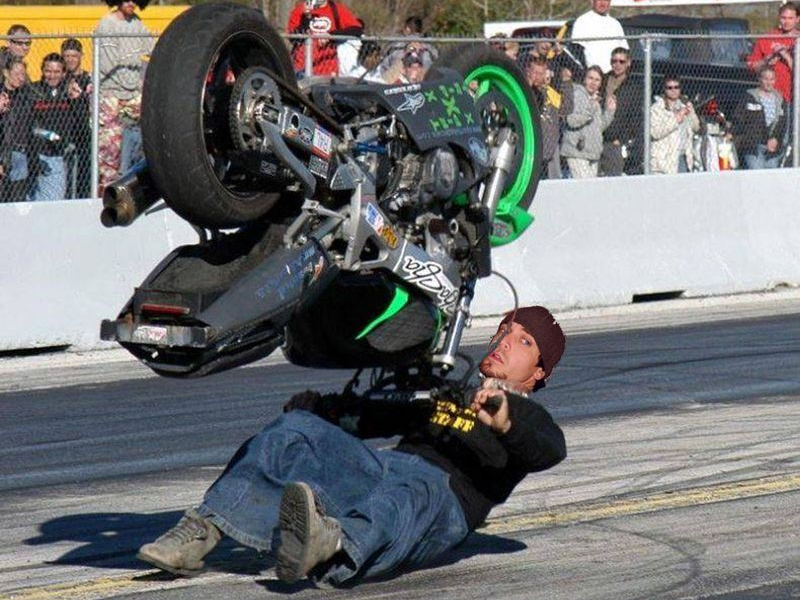 За секунду до падения двухколесного транспорта НА человека. Жесть, конечно!