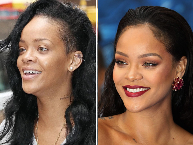 Из-за своей экзотичной наружности исполнительнице даже без гримма удается выглядеть достаточно хорошо. Но всё-таки, высококлассная работа стилистов ставит контраст даже на обаятельной наружности Рианны.