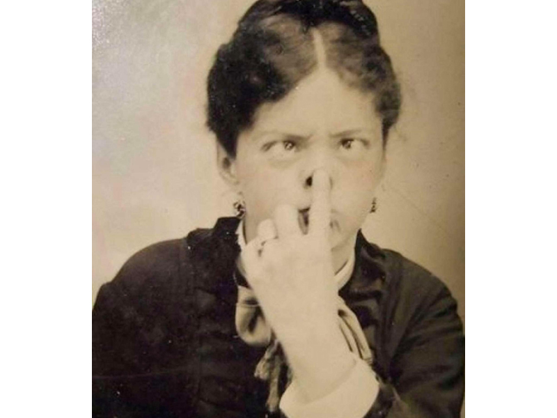 Изображать гримасы на фото обожали во все времена. Яркий пример тому девушка на фото!