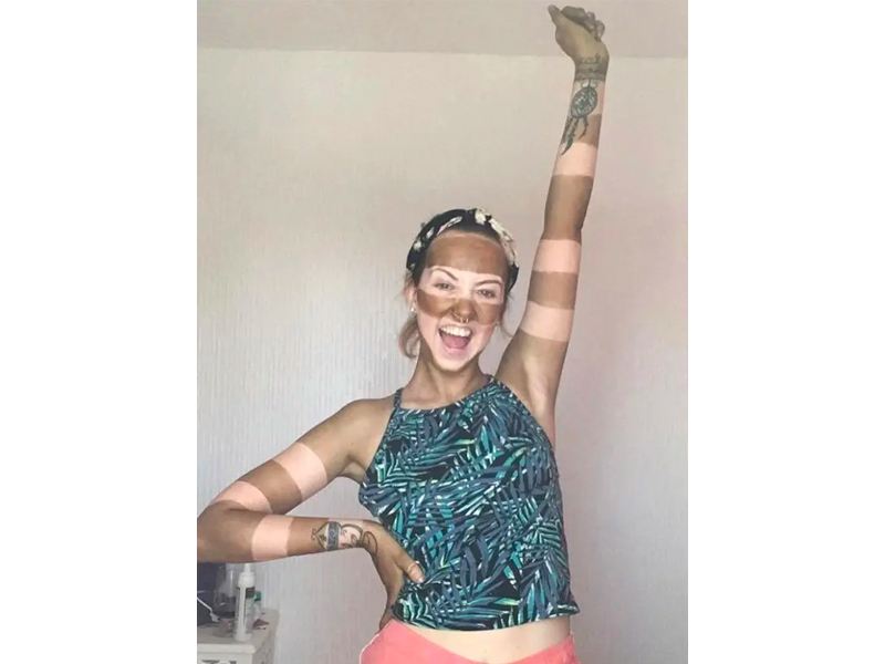 Предвосхищая все вопросы, ответим сразу: девушка обзавелась таким загаром намеренно! Зачем, и почему именно такого вида загаром - уже другой вопрос. Но тем не менее, это фото достойно заняло почетное 5-е место в нашем списке