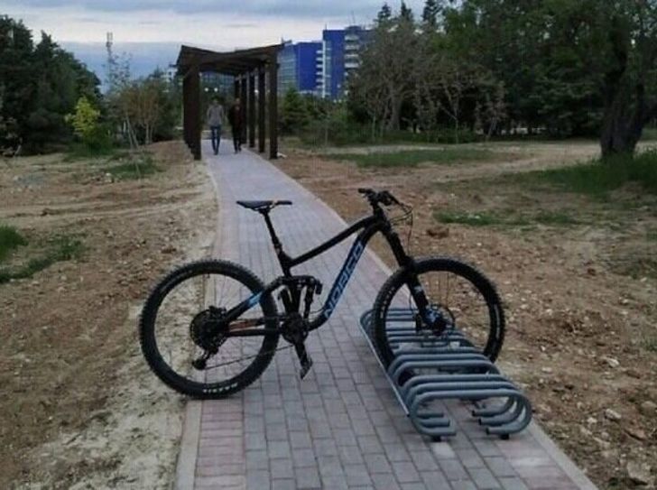 Задумка с велопарковкой хорошая, исполнение - не очень. Ходить то как?