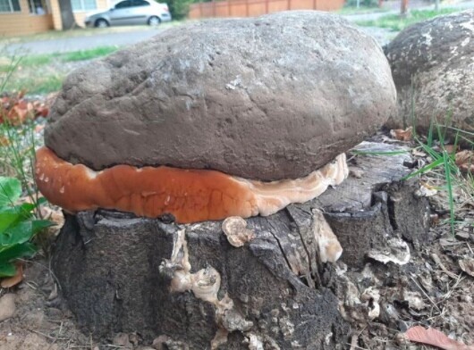 Гриб пророс между каменей, поднимая камень весом 7 кг